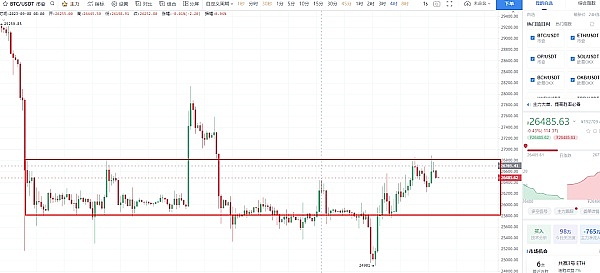 当前,比特币(BTC)交投于26500附近,靠近价格箱体的上边缘。如果无法保持在这一水平,可能会再次回落。与此同时,山寨币的上涨吸引了许多投资者,因此很可能继续在价格箱体内震荡。在上方,压力位可能在27450,而支撑位则在25600。