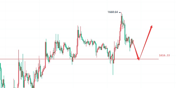 以太坊昨天的空单比较完美,1650的空单可以稳健落袋,或者继续持有保持下看。日线上以太坊今天刚刚站稳boll中轨,附图指标有明显的下探趋势,后续只有站稳1640才能保持日线看多趋势,思路一定要清晰。短线四小时上以太坊维持三浪上涨,继续站稳1640以上才能扭转趋势,一小时上boll属于震荡行情,上方1640压制明显,下方支撑1615。综合上述情况建议日内回调做多。昨日空的那可继续持有。