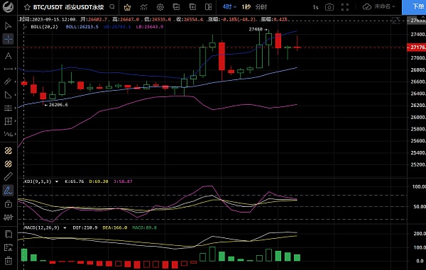 BTC:27000附近多看目标27500附近 破位看27800 止损300点