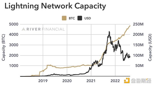 SegWit的激活是闪电网络发展的关键先驱。闪电网络是一种分层扩容解决方案,可实现快速比特币支付。通过链下结算交易并仅向比特币主网广播结算余额,闪电网络旨在增强比特币的可扩展性和交易能力,而不损害其核心安全模型。自诞生以来,闪电网络作为一种支付方式取得了显着的增长,允许即时小额支付,凸显了比特币作为高效交换媒介的可行性。