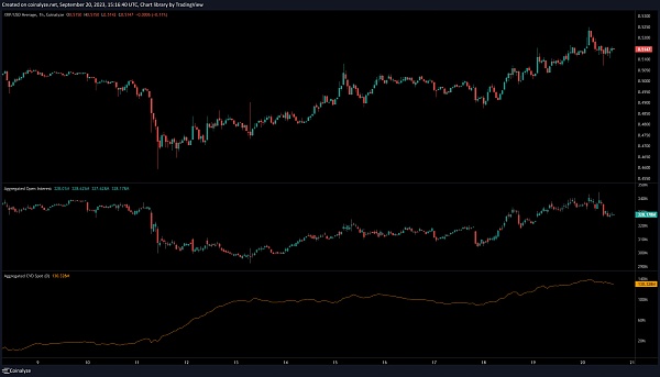 过去一周,XRP 的价格呈走高趋势。Coinalyze 的一小时图表显示,未平仓合约 (OI) 也呈上升趋势,尤其是 9 月 18 日之后。现货累积交易量增量 (CVD) 也注意到过去十天的大幅波动,推动其走高,凸显了现货市场的需求。