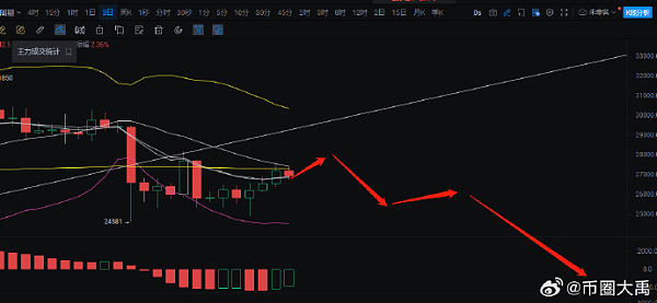 跟+v:wgq13114技术面日线:日线在月底前走到28500一线结束这笔日线向上四小时线:四小时这笔来到27200一线要有一波短暂的盘整过程,上行进行中15分钟线:26700-27200继续盘操作计划:25300多单继续持有,目标28500附近,止损就设置保本损,真的因为美股下跌的话也没什么损失 27200空单持有,28500准备补仓多单爆仓价控制在17000以下,空单爆仓价控制在34000以上