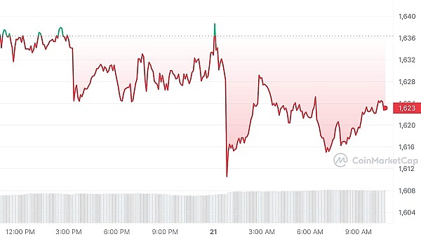 然而,尽管以太币经历了这些大幅波动,该加密货币的价格仍然相对稳定,在本文撰写时交易价格为1,623.16美元。