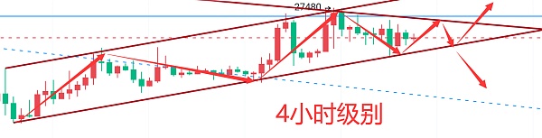 言归正传,且看今日简析。凌晨的消息面并没有带来很大的波动,大饼目前还是在27000一线,思路还是维持之前的不变,下行趋势线是接下来关注的重点,突破企稳上方还有一定的空间,否则还是看下探测试日线中轨的支撑。日线级别布林带开始有开口的迹象,7日均线暂时跟随K线,30日均线在中轨一带运行,MACD双线继续保持向上运行量柱转缩量,KDJ受阻拐头向下,再看4小时级别短线方面这波上涨目前行情还是处于上涨通道,从通道看接下来的支撑关注26600一线,如果K线实体跌破这里,那么短线以反弹空为主。上方的阻力还是在27300-27500一线,做趋势布局的朋友需要耐性等待多观望一下,短线建议27300-27500一线空,26800-26600一线接多,注意K线若实体破位就不参与多单。今天的简更到此结束,下期再见。大饼姨太更多实时建议找到格格。建议仅供参考,进场做好风控,利润空间止损空间自行把握,具体策略临盘为主可咨询。