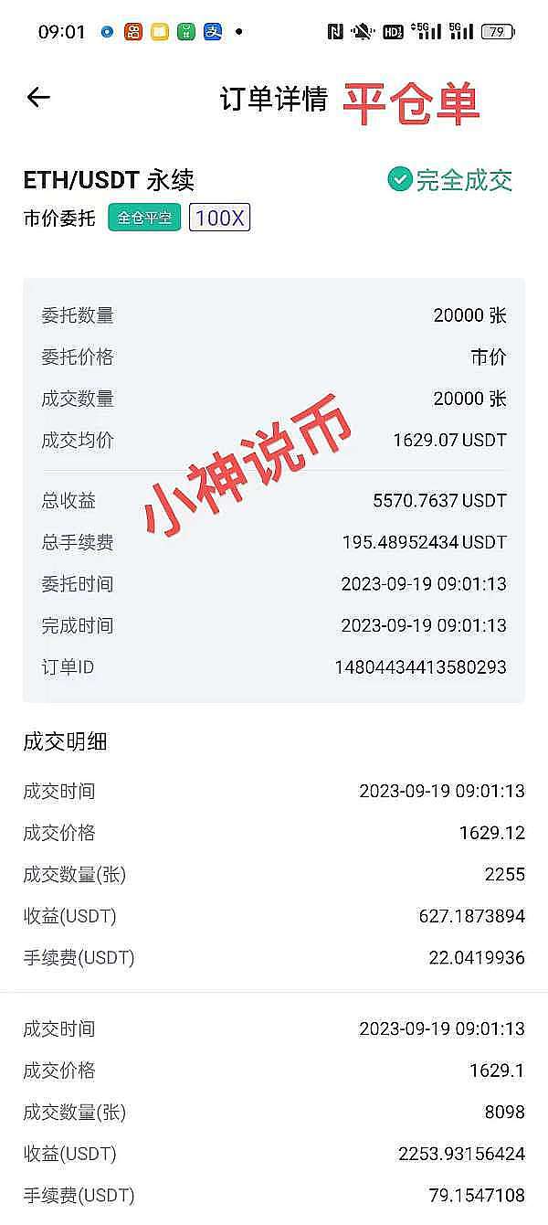 小神:恭喜 btc和eth行情暴跌 空单布局全部止盈 盈利8700U 完美
