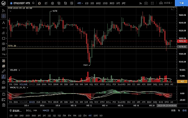 以太坊昨日走势和大饼一致呈连阴回落,最低跌至1567一线支撑反弹,恭喜跟上昨日思路的朋友空单获利50点,目前币价在1594附近运行,四小时级别空头逐步缩量,下方关键支撑未破,且二次下探未破前低,短期有反弹需求,上方关注ma7均线压制情况,突破才有延续的可能,日线级别k线连阴回落跌破震荡区间中枢来到底部,目前走势来看反弹力度薄弱,后市有延续下行的需求,思路建议反弹高空为主低多为辅,上方压制1610-1640,下方支撑1560-1540
