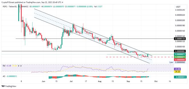 Pepe 价格在过去 24 小时内上涨了 20%,突破了看跌技术形态的上限 0.00000071 美元。