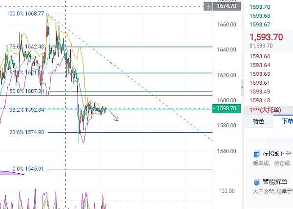 以太坊操作区间1595现价空单,目标1580
