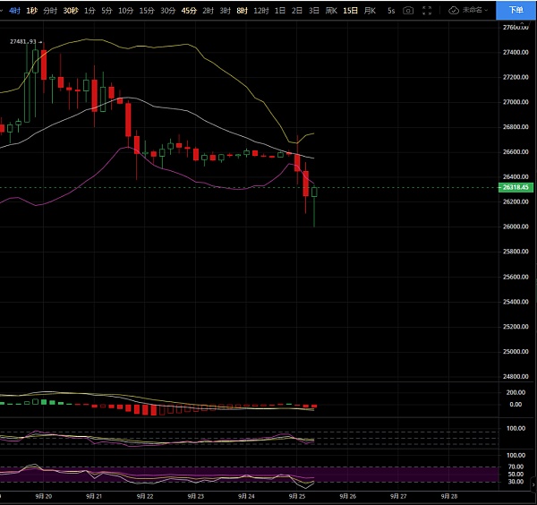 新的一周已经开始,九月也到月尾阶段了,都说金九银十,到底这个深秋阶段投zi者有没有盈利只有自己心里清楚。大饼的行情自上周五以来持续的横磐整理,在今天凌晨也是再次的迎来多空小幅激烈的争夺,先是一波拉升到了26735,然后在迎来一波下探最低早间到达26000,目前币价位于26300附近运行。回顾上周行情走势,基本维持在震荡区间运行,高点低点均未打开,震荡行情就非常适合多空短线操作,智多星在上周一和周二写了文章,看文章的币友都拿下了不错的利润,主要这段时间自己的事情要处理,没能及时分析行情并分享给大家,望大家理解。废话不多说了,咱们看看今日盘面走势情况。