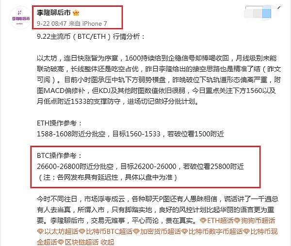 大饼。墨迹周末拿了两天,唱空思路成功见证,李隆全网有所强调,26600上方直接分批去空,目前最低触及26000附近,短线走人600余点,点位依旧精准吻合,盘中理性稳健取舍。李隆聊后市,交易无难事,平心而论,贵在真实。