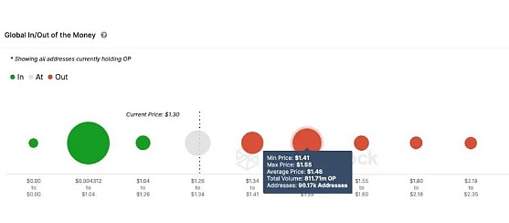 (GIOM) 数据描述了当前Optimism持有者的分布,也验证了这一看涨论点。它表明,如果Optimism能够突破 1.34的初始阻力位,多头可能会乘势冲向 1.50