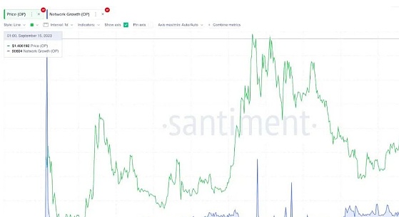 Santiment 的链上数据显示,Optimism上一次在 24 小时内新增用户达到 9 万,是在 2022 年 5 月 31 日主网线。