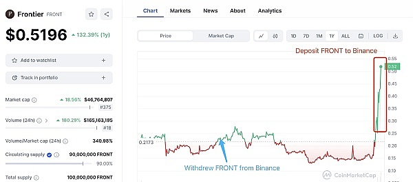 Frontier Coin (FRONT) 涨幅超50% 700万美元头寸赚利丰 但存疑