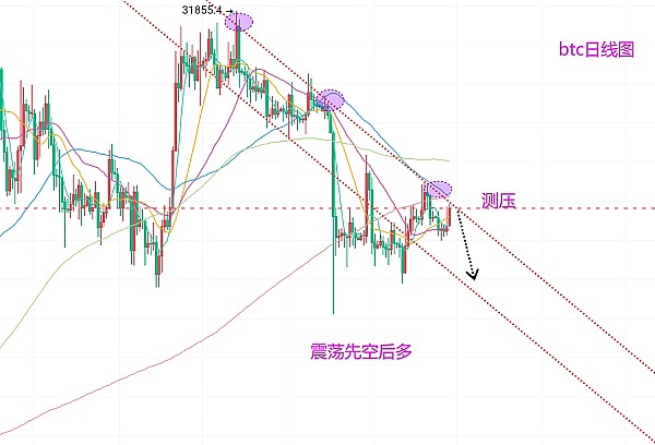 btc 27000区域直接箜,防守27400,看26100至25800 首次见26100不破先多一次看300-400点反弹。