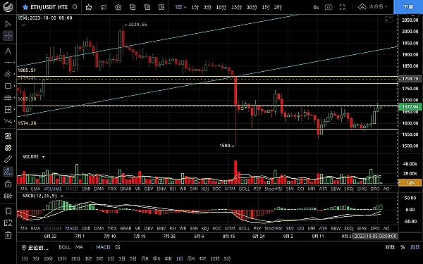 以太坊昨日高位触及1688一线后承压回落,期间二次反弹未破前高再次下行,低位跌至1655附近支撑,恭喜跟上昨日思路的朋友空单小幅获利,目前币价在1670附近运行,四小时级别行情破位前高后未能走出延续,阴阳交替下行,但始终未能收线在ma7下方,可见多头支撑较为强势,macd逐步缩量双线金叉状态,k线走出三连阳碎步上行,整体走势比大饼稍强,日线级别走出下影线后预计行情会有反弹,短期关注ma60压制情况,若收线在上方则有延续的可能,思路建议回踩低多为主高空为辅,上方压制1690-1730,下方支撑1650-1620