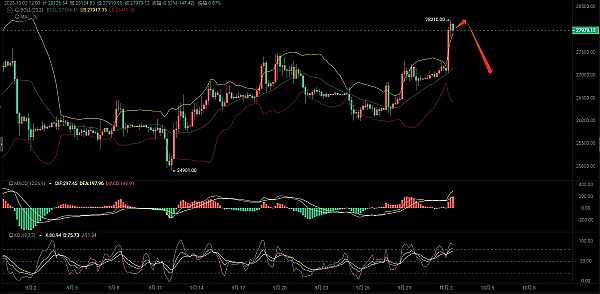 BTC 28000-28100附近空 目标27500-27600 风控28600