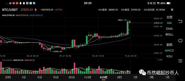 围绕比特币btc27400-27600附近进场做多,目前28400附近止盈出局