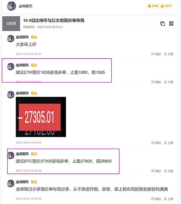 金辉聊币:恭喜 直播间现价布局的btc多单拿下300点 eth拿下14个点 太完美了