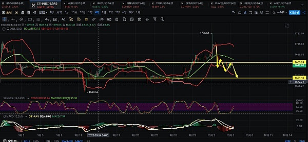 ETH操作建议:1645附近介入空单,止盈1590,止损1670