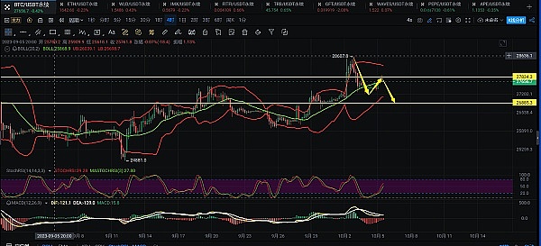 BTC操作建议:27700附近介入空单,止盈26900,止损28000