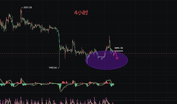 以太坊。连日震荡不羁探低不止,昨晚抽象反弹50附近承压棒喝,踏空临近1600关口附近才有所搁浅,市场抛压情绪愈发走强,昨晚李隆唱空思路也完全吻合。目前4小时结构依旧偏弱,BOLL通道持续向下拐头收口,且中轨压制格外明显,但临近下方1610-1600支撑关口屡探收回,空间上仍需反弹小补去蓄力攻破,李隆还是那句话,1600一旦失守空方还会加剧,进场切记做好分批风控计划。