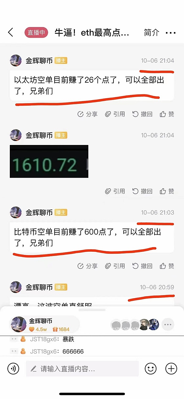 金辉聊币:恭喜 非农前直播间布局的比特币空单拿下600点 以太坊拿下26个点