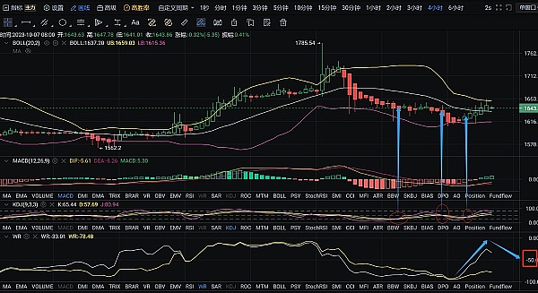 切入正题吧,当前极短周期4H走势中价格仍旧回到近期波动范围的中间值1640一线。处以4小时布林带中上轨间,又到了上方阻力位和下方支撑位的中间值部分。上轨1660附近仍旧是打开多头空间的一扇门,下方1610附近底部短线支撑。日盘走势区间大体还是会围绕这上下区间展开!