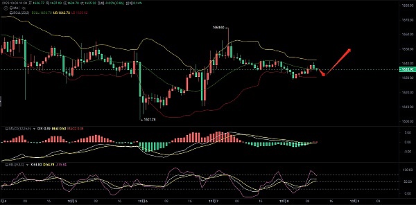周末行情基本进入横盘调整,一直围绕着小时线区间内震荡拉锯。1小时图来看,布林通道上轨开口向上,币价运行至中轨下方,MACD粘合多头能量开始放量,KDJ三线死叉抬头向上。4小时图来看,布林带三线 呈开口向上状态 但当前有收阴k十字星 ,短期内看好回测,回踩确认中轨后 再展开拉伸。东哥建议多单为主。