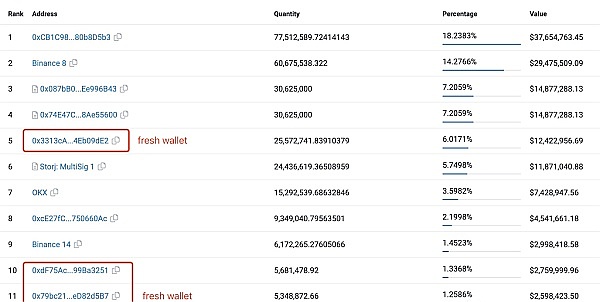 关键的STORJ大户:这4个钱包或在价格上涨后触发抛售