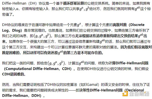 看到这里,对密码学熟悉的朋友们可能会对一个问题的多种版本(如搜索、决策)等等并不陌生。没错,在我们学习Diffie-Hellman公钥交换问题的时候,我们也使用了相同的问题转换。如果不了解的朋友也不用着急,容我解释一波。