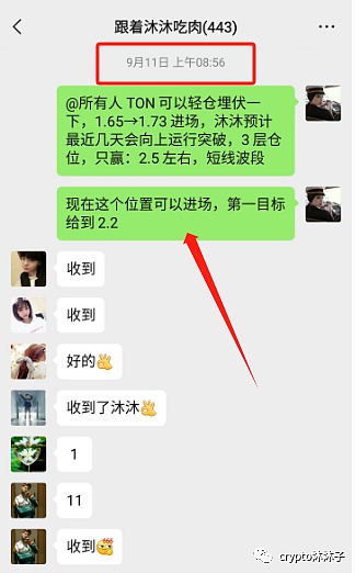 注意看,这个大神沐沐又牛逼了!可以看到沐沐早在9月11日就已经发布了密码,当天TON实时1.68左右。