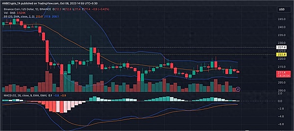 尽管BNB的价格在过去24小时仅下跌了0.89%,达到了211.75美元,但技术指标显示,现在散户考虑入手BNB可能带有一定的风险。