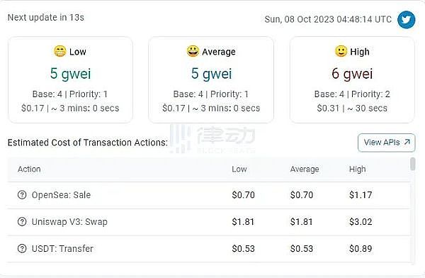 以太坊网络的Gas费已降至5 gwe