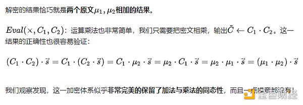 近似同态(Somewhat Homomorphic Encryption):这一阶段的算法拥有不完整的同态属性,比如拥有Pairing配对的ElGamal循环群,具有完整的加法同态属性,但是只有非常薄弱的乘法同态属性。