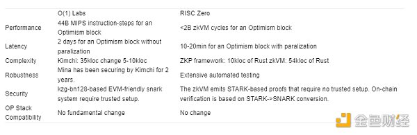 为了缩短当前Optimism七天的退出确认时间,也为OP Stack提供更多模块化的选择,Optimism积极拥抱ZKP技术,希望为OP Stack带来能够证明Optimism fault proof program并且支持知名ISA的ZKP,O(1) Labs与Risc-0团队的方案通过了Foundation Mission (RFP) Application。