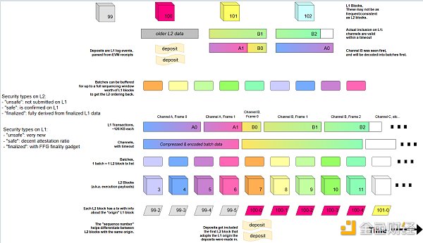 Sequencer在收集用户交易并排序后,会由op-batcher生成一个batch,在batcher将batch提交到L1之前,为了降低Rollup网络中的延迟,Sequencer可以提前生成Layer2的block,通过P2P在Rollup网络中传播。在L2直接产生的block被认为是unsafe的,需要等待batch提交到L1后进行推导才能够视为safe,不过在正常情况下(无区块重组、欺诈等),L2直接产生的block与从L1推导出的block是相同的。Binance等交易所仅等待一定的Layer2 blocks后便认为交易是确定的,而无需等待batch被提交到L1,一定程度上说明出错的概率极低。