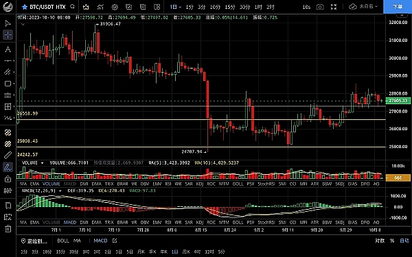 大饼昨日晚间走势与思路一致,呈震荡下行,低位跌至27258一线支撑反弹,恭喜跟上思路的朋友,多单获利400点,目前币价在27600附近运行,四小时级别从整体来看行情二次下探未破前低迅速反弹,k线由阴转阳,空头力度减弱止跌,macd逐步缩量,短期来看反弹并不强势,预计短期走震荡的概率较大,日线级别受ma90均线压制回落,陷入区间震荡,下方27300未有效破位不可盲目看跌,日内思路建议高空低多对待,上方压制27700-28000,下方支撑27300-27000
