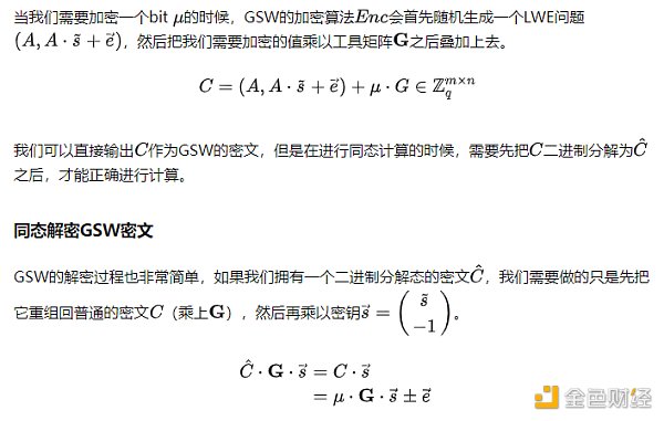 GSW全同态加密体系的三次尝试:矩阵特征值,加入噪音,二进制分解。