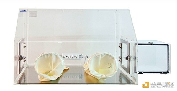 这个手套箱还有一个巧妙的小设计,有一个单向的进口,外面的人可以投任何东西进来。Bob可以通过这个进口把部分的原材料从外面投入手套箱内,但是无法打开手套箱把它们取出来。