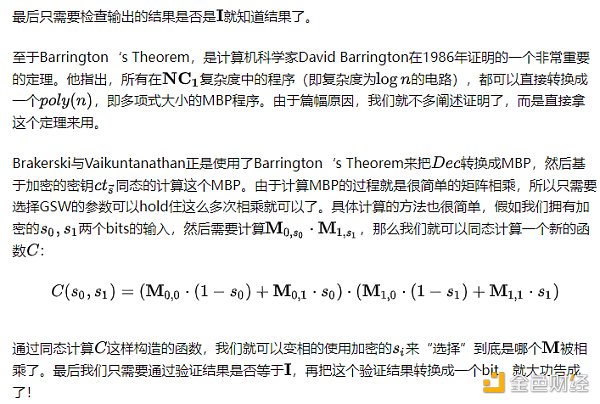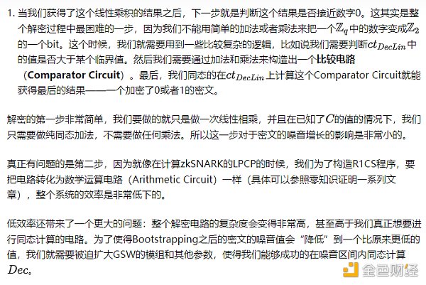 和之前介绍FHE系统不同的是,Bootstrapping其实是一个很广义、宽泛的概念。我们并没有用一系列公式来展示Bootstrapping的过程,而只是介绍了这一种思路,即同态验证解密函数。这种思路可以用于任何FHE的系统,包括BGV与GSW系统。