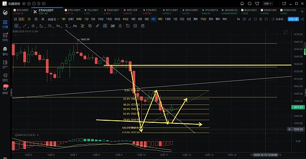 长路说币:10.11以太坊多次测试1545附近低点支撑,能够形成W底吗?