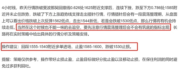 昨天长路在文中、视频中和实时策略都给出了先反弹做空,再次回踩下方支撑不破1544低点可以进场多担当的策略,跟上操作的朋友多空都有收益。