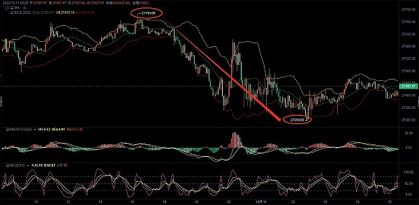 大饼昨日早间给出分析27650附近空单,凌晨达到止盈点位27300,斩获350点。恭喜跟上的小伙伴。