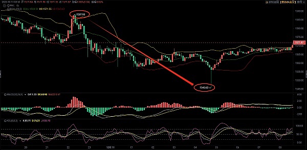 以太坊斩获30点利润,白盘给出分析1585附近空单,凌晨达到1555目标点位附近。