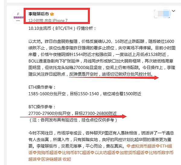 大饼。如李隆早间所说,反弹便是开空时,27700上方分批去空,目前最低触及27300附近,空头思路走出400余点空间,点位依旧精准吻合,盘中理性稳健取舍。李隆聊后市,交易无难事,平心而论,贵在真实。