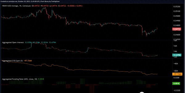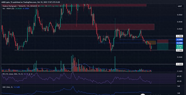 HBAR 陷入了困境!虽然在第三季度支撑位 0.0460 美元上找到了一丝安慰,但它面临的障碍可不少。有趣的是,0.0480 美元和 0.0520 美元的阻力一直在“戏弄”HBAR,拒绝让它进入更高的价格领域。与此同时,期货市场对 HBAR 的需求并没有好转的迹象,而 OBV 也在显示市场的卖出情绪。