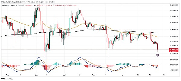 当前,Ocean Protocol 的交易价格为 0.285 美元,直接支撑位位于 0.276 美元。然而,在经历 200 天均线的拒绝后,加密货币价格已经出现崩溃,势头显示卖方对趋势的掌控。因此,如果价格继续保持相同的下行势头,可能会发生更多的崩溃。此外,价格还有更多的下行空间,直到下降通道模式的下限和主要支撑位 0.25 美元。