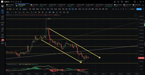 长路说币:10.12以太坊楔形下跌,关注1530的支撑
