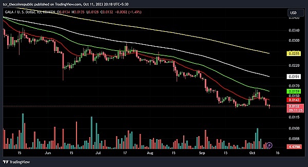 截至本文撰写时,Gala Coin(GALA)的交易价格为0.01313美元,盘中跌幅为2.54%,交易量为32,323,987美元。根据Tradingview的数据显示,GALA在过去一周内交易额下降了14.94%,在一个季度内损失了超过45%。