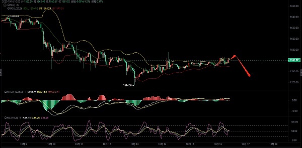 ETH空单:在1570-1575附近开空,目标设定为1540-1530,风控设置在1590。